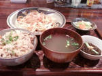 娘は箸と皿を持ってスタンバイ。食い気100%。わたしはあんまり食べられなかった…娘に圧されて。